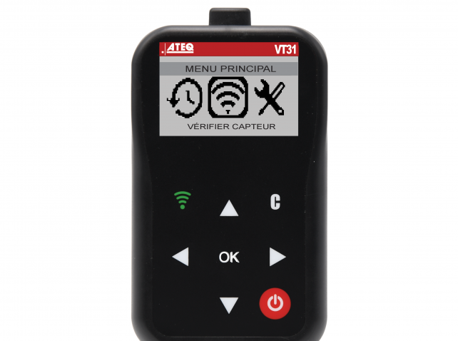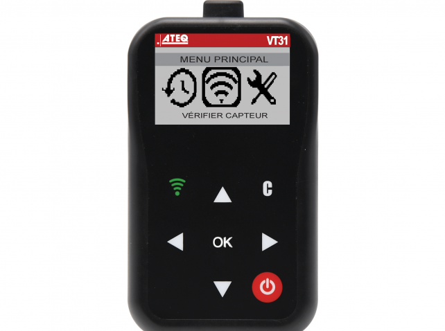L’ATEQ VT31 est un lecteur et un outil d’activation de capteur TPMS pour aider à réinitialiser un système interne TPMS autonome. Une fois que le réapprentissage est initié, utilisez le VT31 pour déclencher les capteurs TPMS en permettant au nouveau code d’identifiant du capteur TPMS d’être saisi par l’ECU du véhicule.